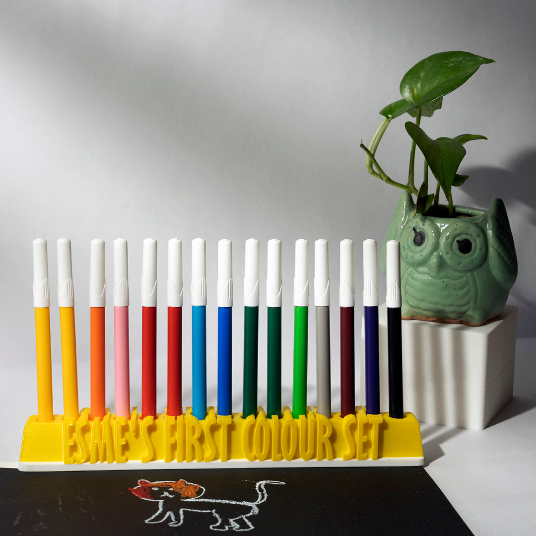 Organizer excels! 15 pens fit. Personalized it, and it shines. Colors rock!